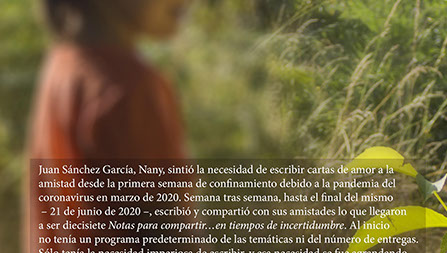 Junto a las Notas hay una sección que el ensayista tituló Reflexiones al cubo en el que participaron 47 personas. Con un máximo de 800 palabras escribieron lo que significó para ellas recibir dichos escritos durante el estado de alarma. Sorprende gratamente ver como muchas de esas personas se hacen eco de la finca y de la ADP.