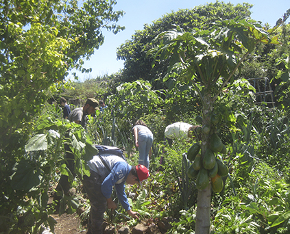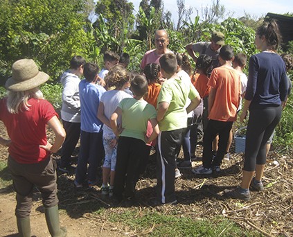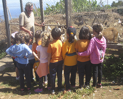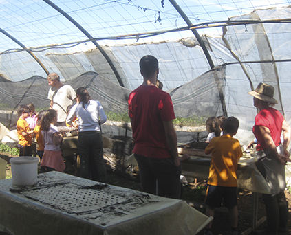 1.- La visita de un grupo de estudiantes de cada centro educativo, con su profesorado, a la Finca El Mato Tinto, donde realizaron una serie de actividades programadas relacionadas con la Permacultura (visita a la Granja, actividades de siembra y plantación, observación de invertebrados y microorganismo con lupa bifocal, observación del sistema de depuración natural de aguas residuales, etc).